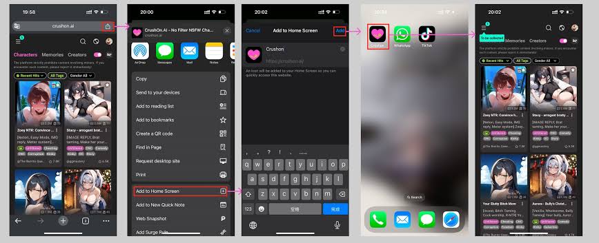 Adding CrushOn AI to your phone’s home screen makes it faster to access and gives it an app-like feel without downloading anything.