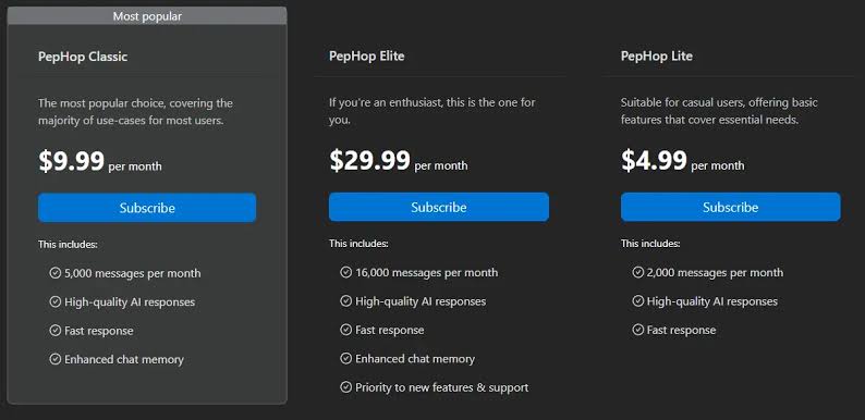 While Pephop AI offers a free version, its premium plans unlock features that transform the experience from casual to deeply personalised.